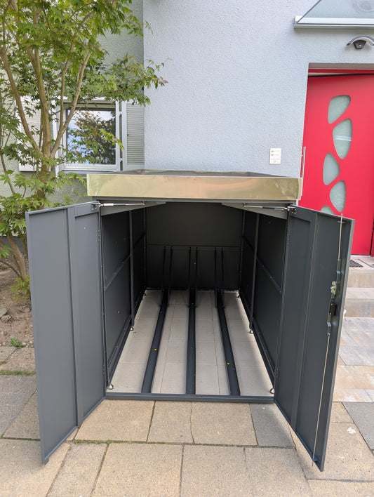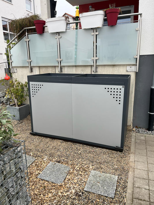 Mülltonnenboxen für 120l oder 240l als 2er Set, anthrazit aus Metall, mit Deckel