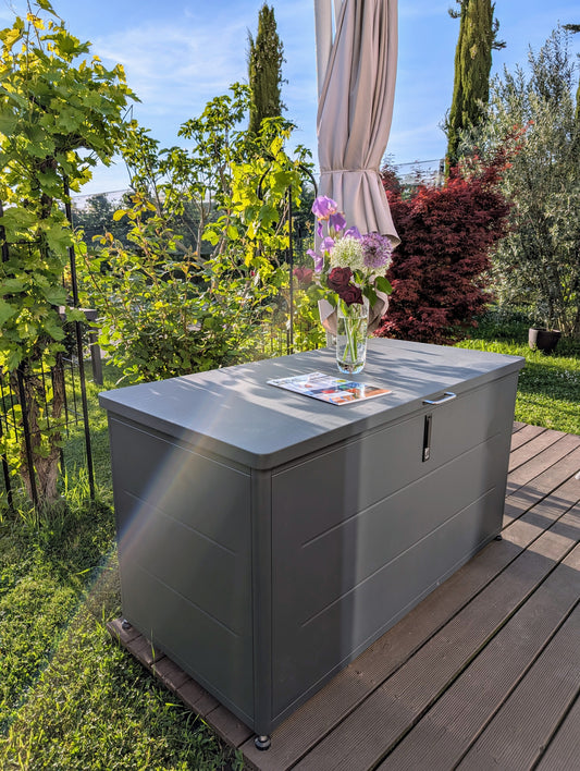 Kissenbox & Gartenschrank: Für mehr Ordnung und Stauraum im Outdoor-Bereich sorgen unsere praktischen Kissenboxen und Gartenschränke. Sie bieten Platz für Kissen, Gartengeräte oder sonstige Accessoires – und überzeugen dabei durch ihre wetterfeste Bauweise und ihr modernes Erscheinungsbild.