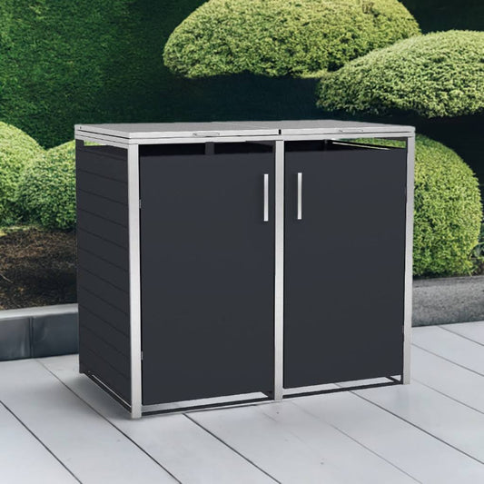 Mülltonnenboxen für 120l und 240l als 2er Set, aus Metall Edelstahl Kombination, mit Deckel
